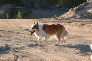Iltalenkin jälkeen katsoimme Suomen pelin, jonka jälkeen olin menossa jo nukkumaan. Super oli kuitenkin sen verran levoton ja Laikokin piippasi, joten päästin nuorenparin ulos vielä kertalleen. Menin sitten kuitenkin itse perässä punaisessa yöpaidassani punaiset kumisaappaat jalassa. Tottahan toki se sitten nasahti... Kivapa oli olla takapihalla itikoiden syötävänä. Onneksi nalkki ei kestänyt kuin 10 minuuttia. Johan rauhoittui pariskunta aloilleen yöksi.